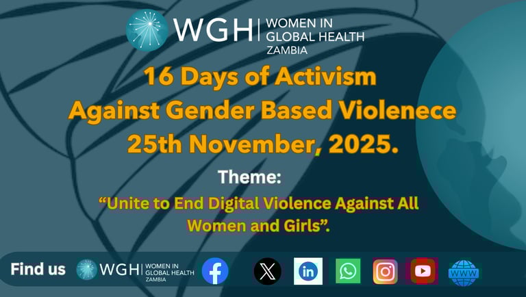 WGH Zambia is excited to have joined the govt, partners and champions across the country for the launch of 16 Days of Activism Against Gender-Based Violence under the powerful theme: “Unite to End Digital Violence Against All Women and Girls", up until the 10th of November 2025.