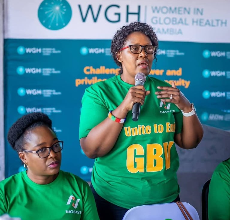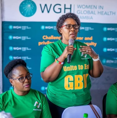 3. Ending Gender Based Violence — WGHZ addresses GBV as a major public health concern linked to power imbalances and other health issues. As an advocacy partner with the Division of Gender, WGHZ supports efforts to eliminate violence against women and girls in Zambia through national events, workplace research, and community campaigns. In December 2024, WGHZ worked with NATSAVE Bank and Chipata Level One Hospital on a week-long GBV awareness campaign.